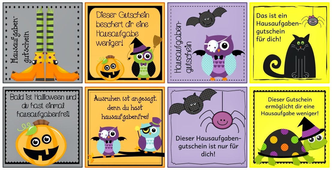 | Hier zum Download: Hausaufgabengutscheine Halloweenmotive |
