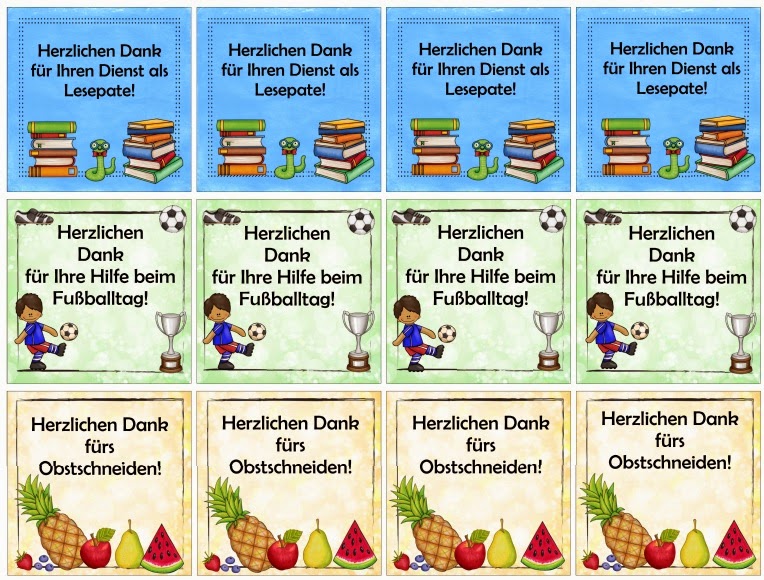 Der nächste Schwung an Dankeskärtchen für engagierte Eltern ist fertig. Ich habe bereits einige eurer Wünsche/Ideen eingearbeitet. Ich hoffe, die Kärtchen gefallen euch!