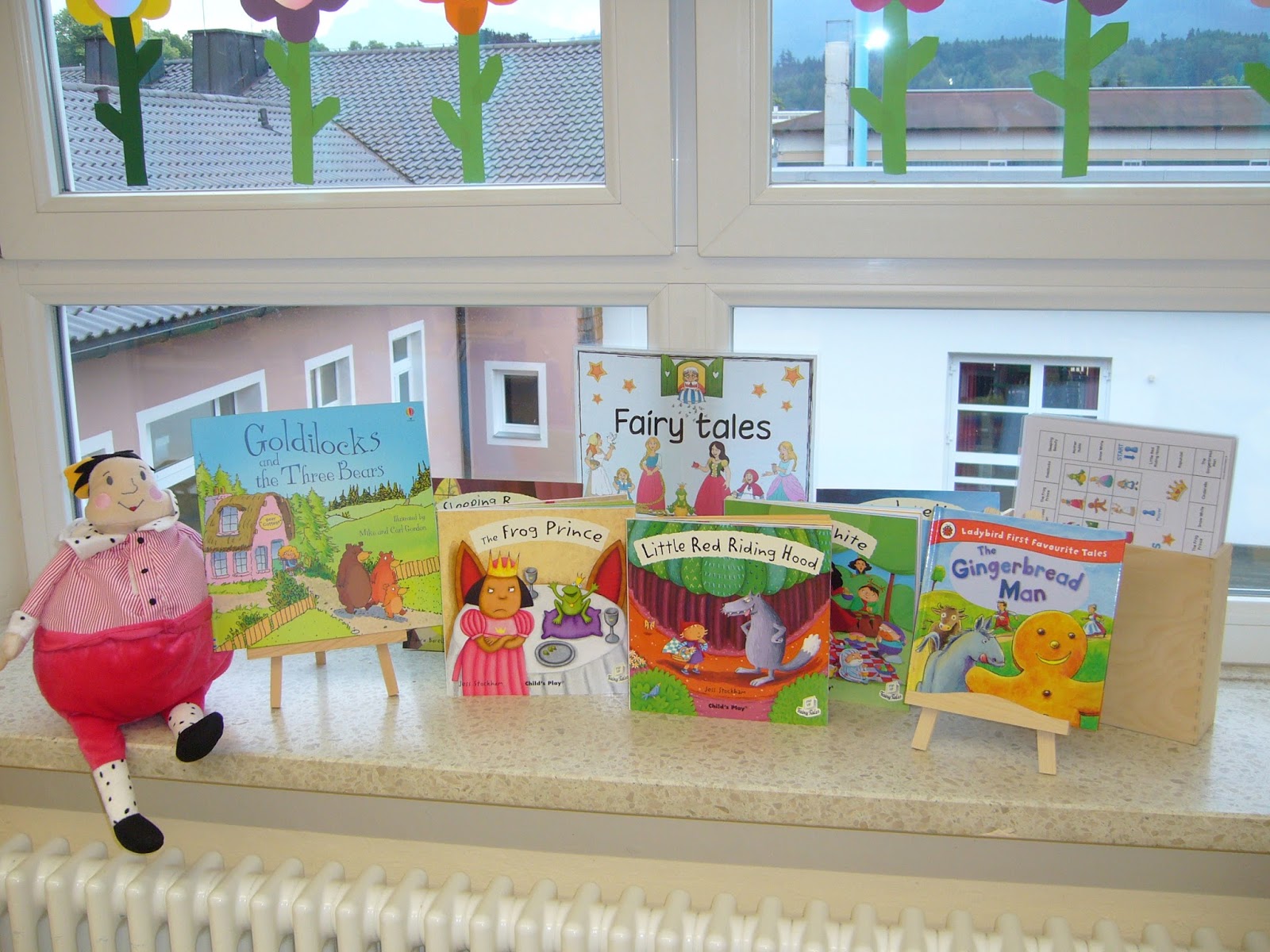 Heute und morgen werde ich noch einige Materialien einstellen, die Rahmen der Projektwoche „Märchen“ entstanden sind. Heute gibt es ein Foto von einer kleinen Ausstellung mit englischen Märchenbüchern. Die Bücher passen zu den Märchenfiguren, die ich im Unterricht behandelt habe. Die Kinder haben in erster Linie natürlich die Bilder angesehen. Aber ich finde es trotzdem schön, wenn sie auch mal englische Bücher in die Hand nehmen und darin blättern. Manche haben auch geschaut, welche Wörter sie schon kennen.