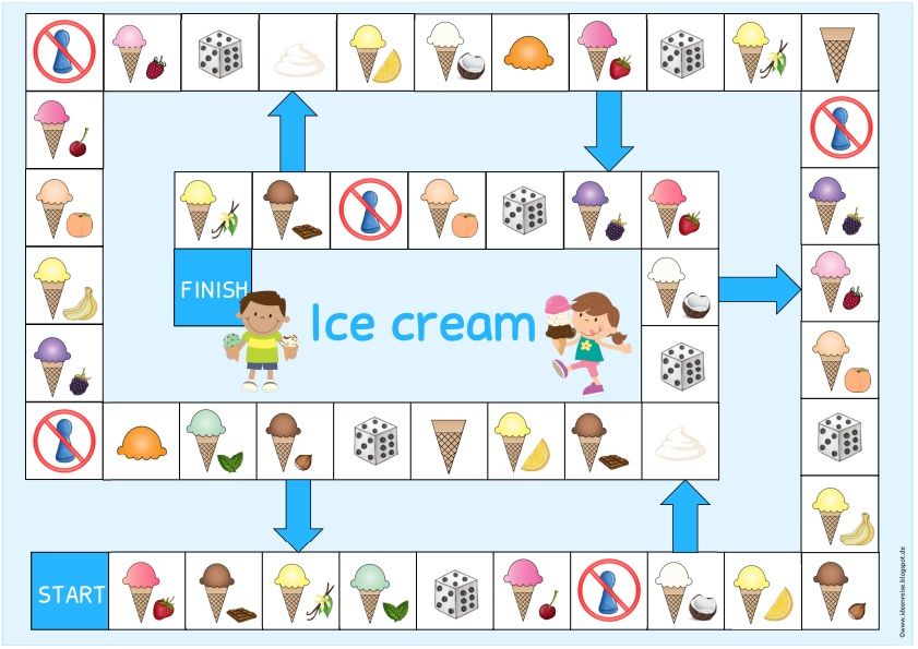 Zum Englischthema „Ice cream“ kommen hier noch zwei Spielfelder zum Üben der Begriffe. Eine kleine Erklärung der Spielregeln ist wieder am Ende des Material mit dabei.