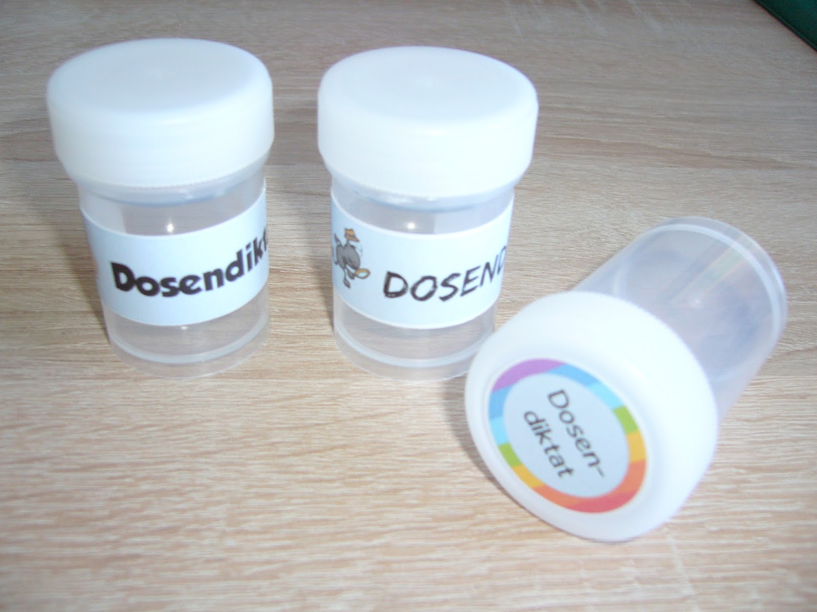 Für Dosendiktate verwende ich übrigens gerne leere Filmdosen oder solche Schraubdosen.